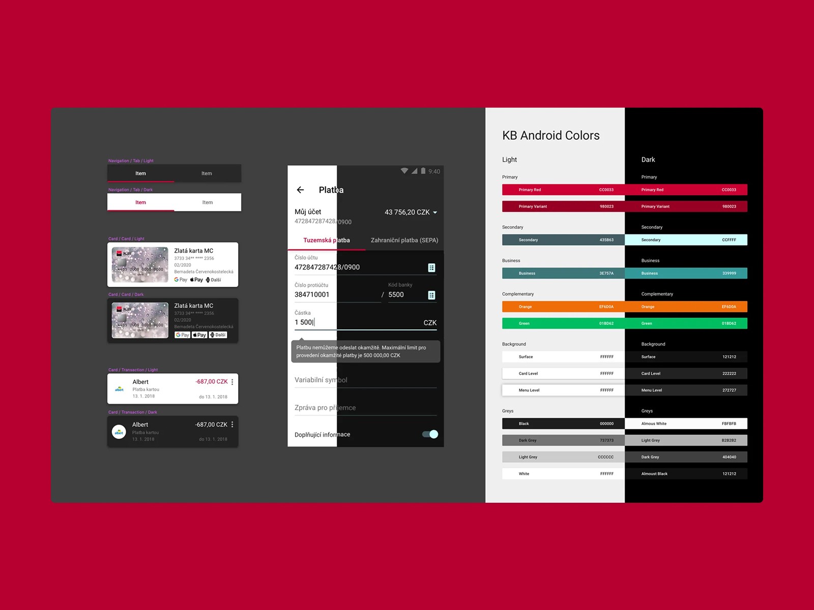 This was my first IT job and my first real experience as a designer. KB Mobile Banking was a big project, made up of three apps: Retail, Business, and Skyline (for Slovakia). The apps were very successful and even won “Banking App of the Year” several times.